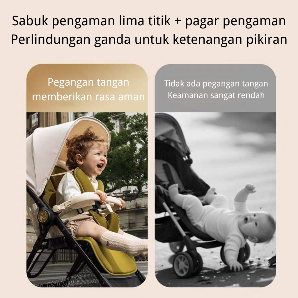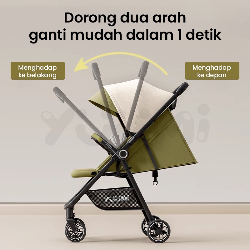 Yuumi Stroller Bayi Lipat - Kereta Dorong 2 Arah Roda Universal 360° Sabuk Pengaman 5 Titik Portabel Traveling Cabin