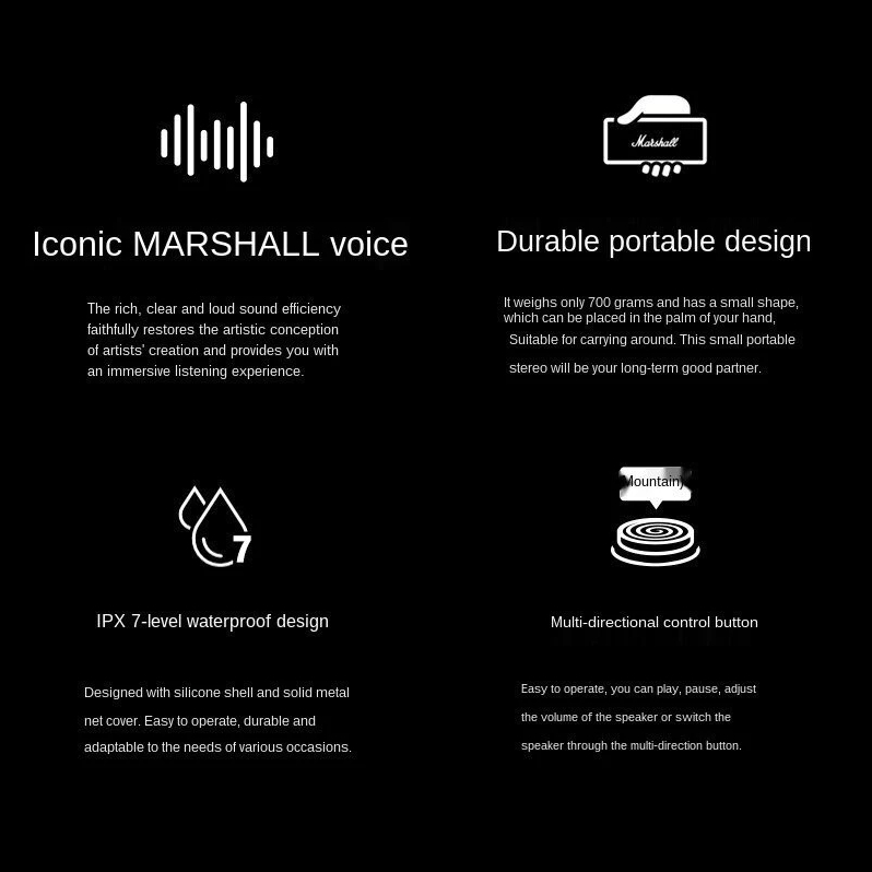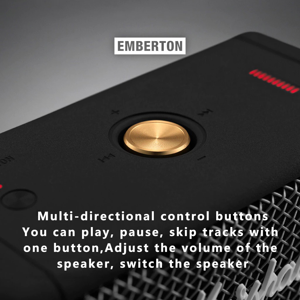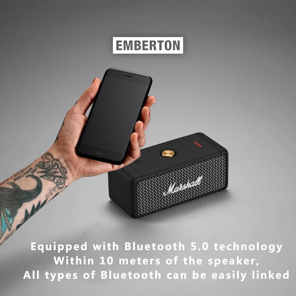 Marshall Emberton Speaker Luar Ruangan Subwoofer Bluetooth Portabel Berkualitas Tinggi Spiker Bluetooth mini Aux Jack