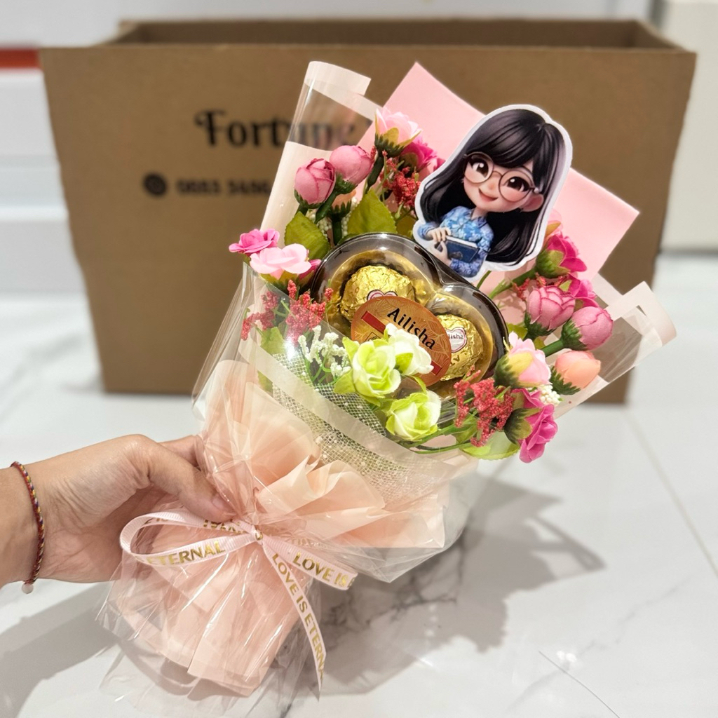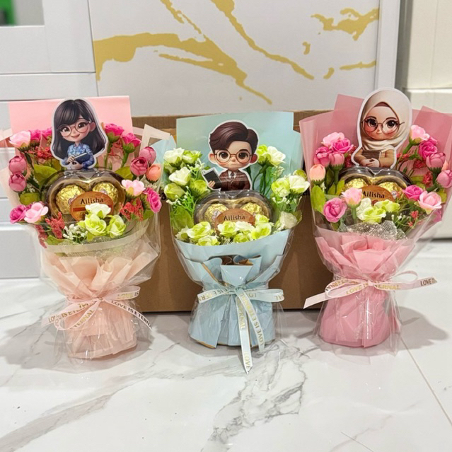 ( 1 Set ) Buket Bunga Hari GURU + Coklat | FREE KOTAK , hadiah , gift