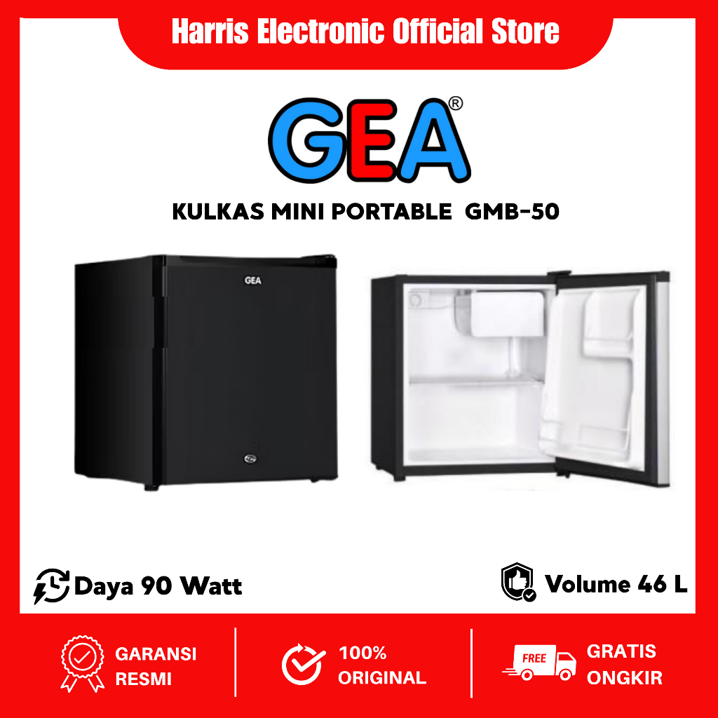 Kulkas Mini Gea Bar GMB-50 Black Matt Grey Portable Rak Besi 48L
