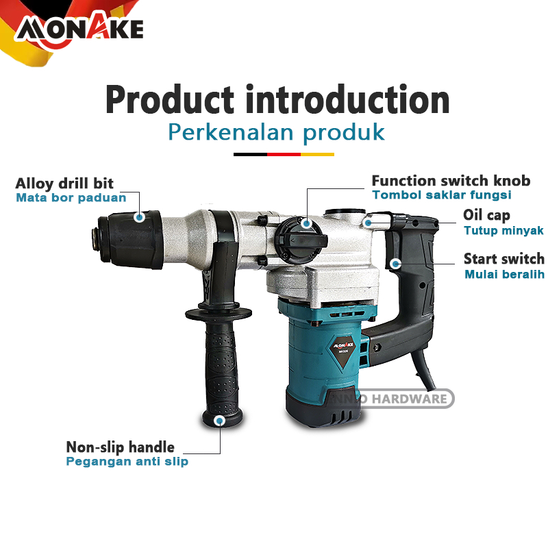 MONAKE ALAT JERMAN ROTARY HAMMER DRILL MESIN BOR BETON LISTRIK ELECTRIC HAMMER ORIGINAL BEST SELLER