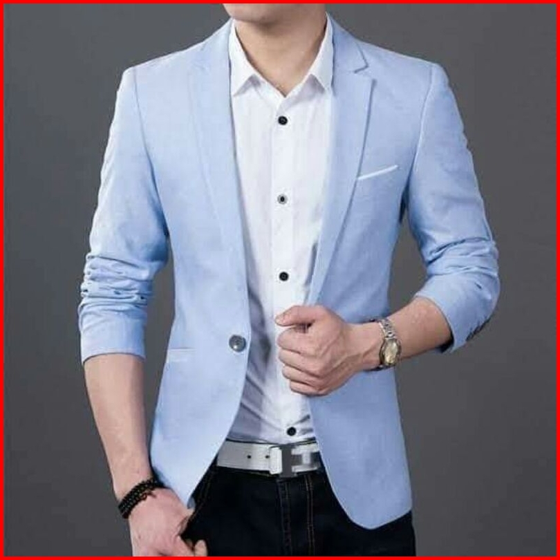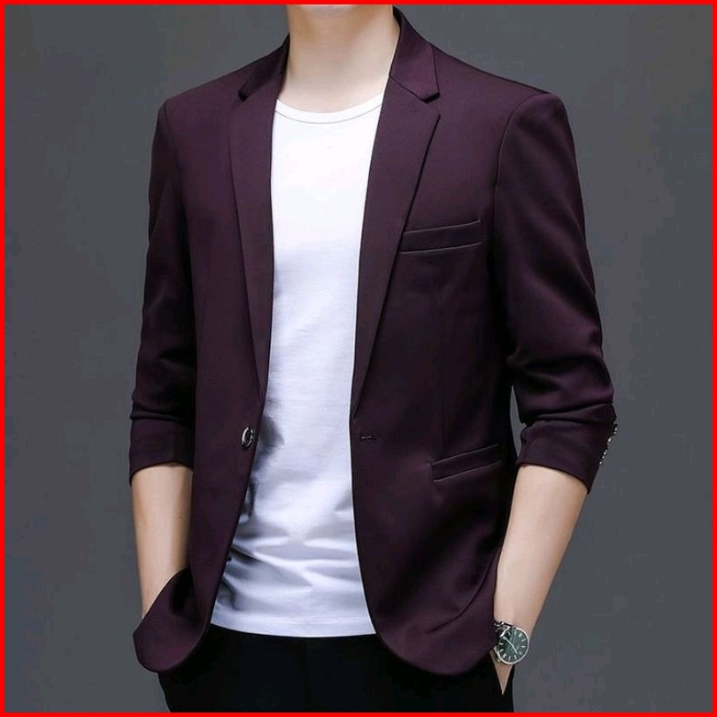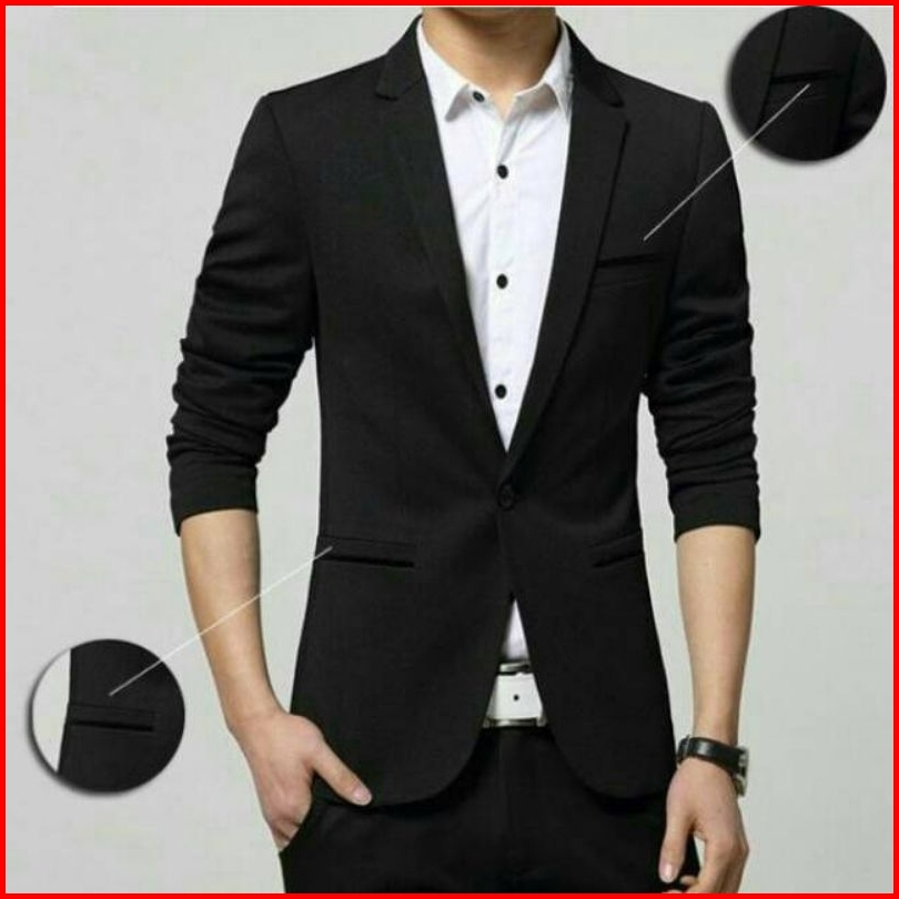 Jas Blazer Pria Semi Formal Saku Tanpa Tutup Korean Style Lengan Panjang