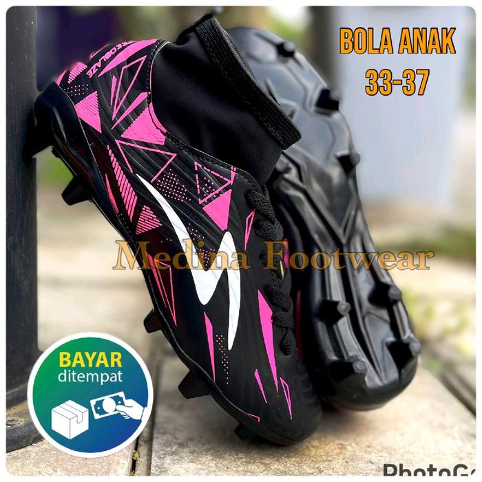 SEPATU BOLA SPECS ANAK MODEL TERBARU UKURAN KECIL SIZE 33-37 SEPATU BOLA JUNIOR - B.SPCS GEO HITAM PINK, 33