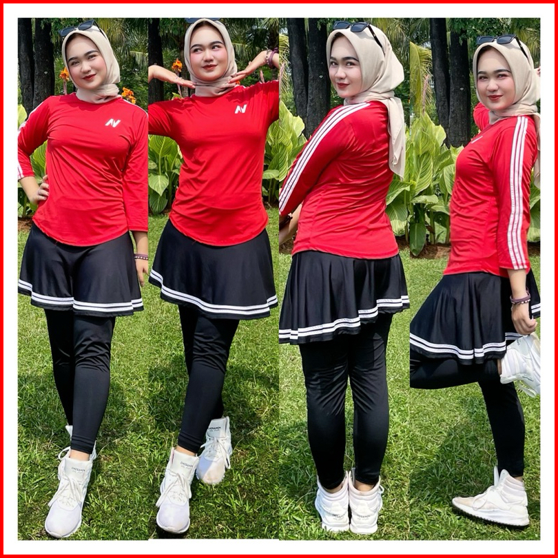 Mix Atasan Baju Senam N Petir 6warna Dan Legging Rok Hitam Olahraga Bahan Atasan Polyster Spandek Untuk Setelan Wanita F