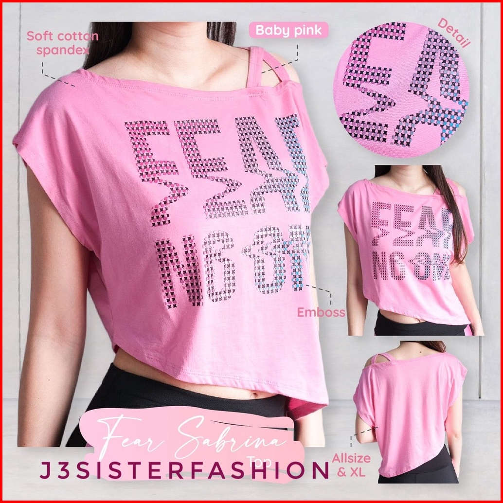 Atasan Senam Sabrina No Fear Pink Baby Merah Putih Baju Senam Zumba Aerobik Dance Salsa