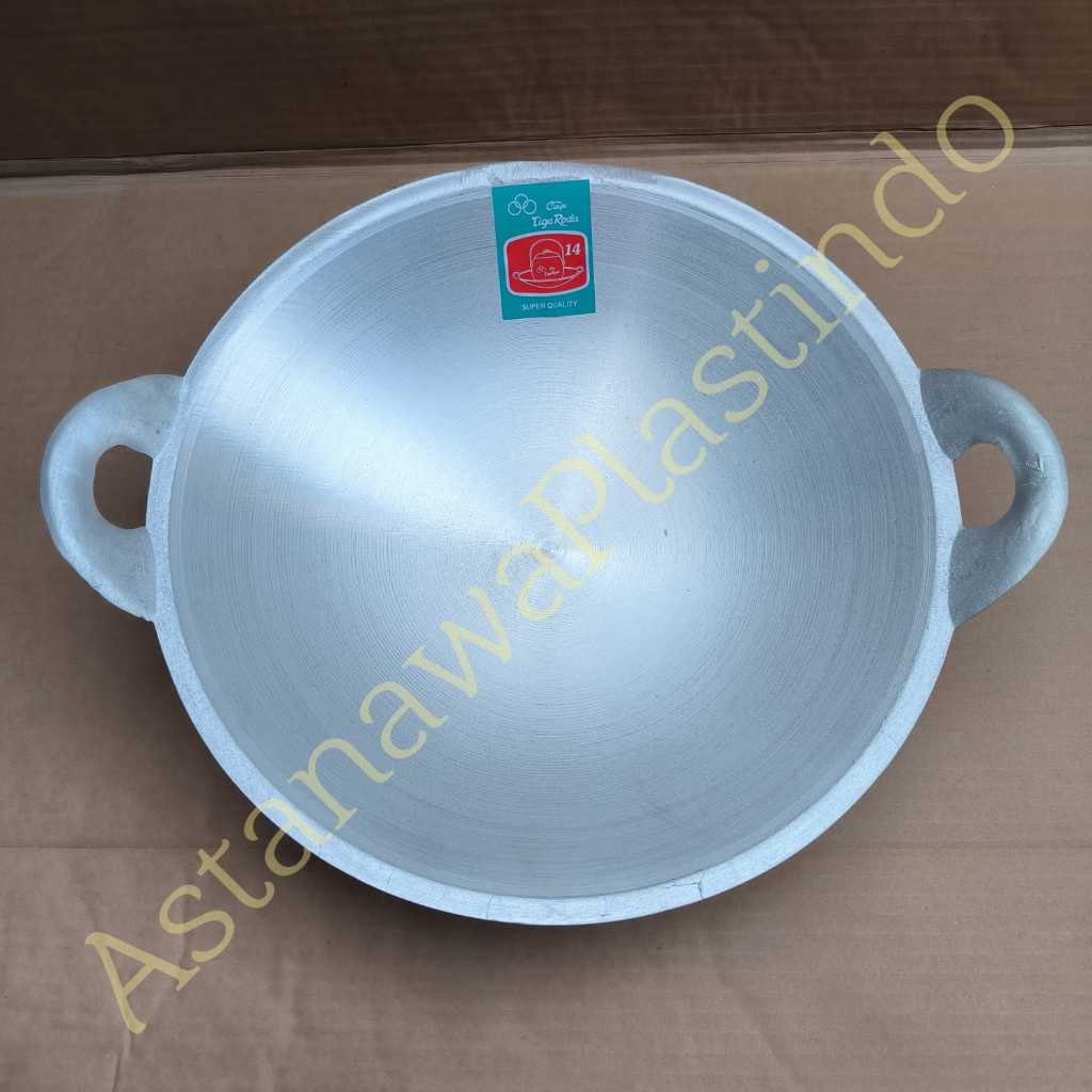 Wajan penggorengan kuali TIGA RODA Nomor 14 kuwali cekung alumunium tebal tigaroda ceper anti lengket