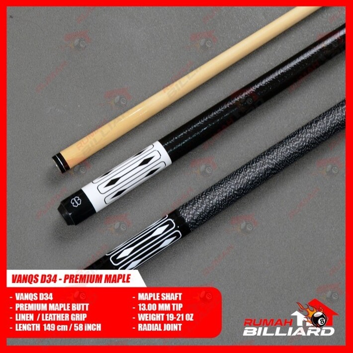 Stick Billiard - Billiard Cue - Vanqs D34 - Leather Linen Grip - 13 Mm Tip - Premium Maple Wood