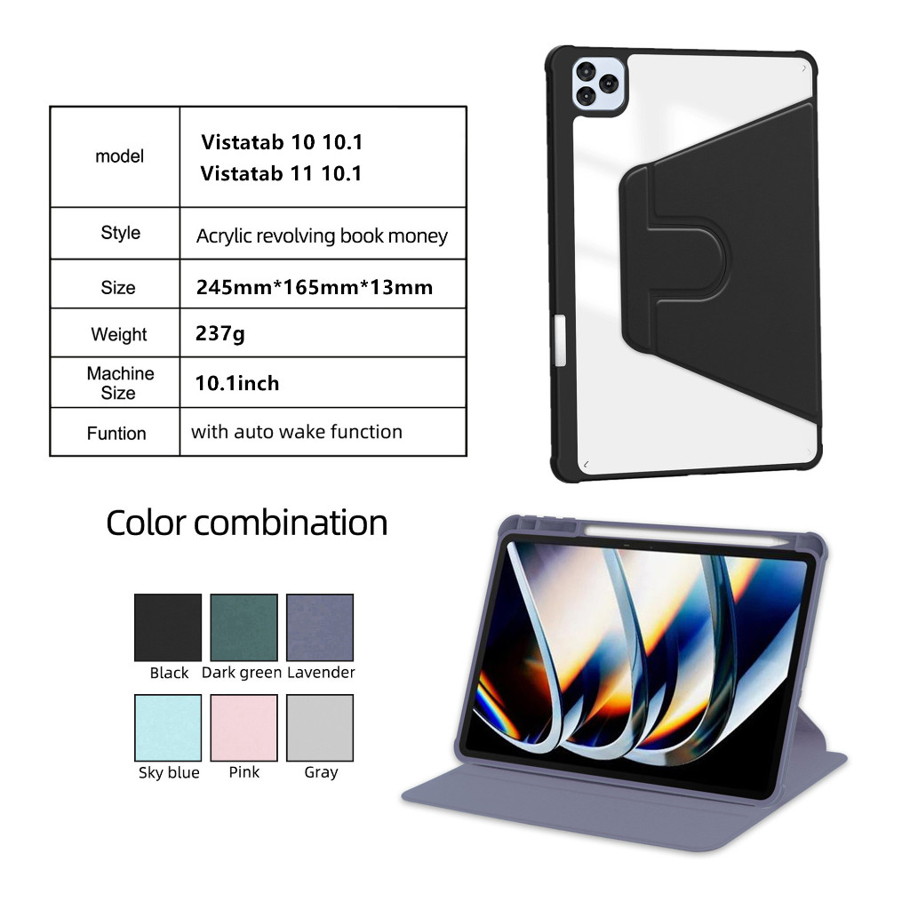 Case Itel Vista Tab 10 /Vista Tab 11 10.1 Inch/ Vista Tab 30 11 Inch 360 Rotate Flip Case Acrylic Crystal Clear Pro