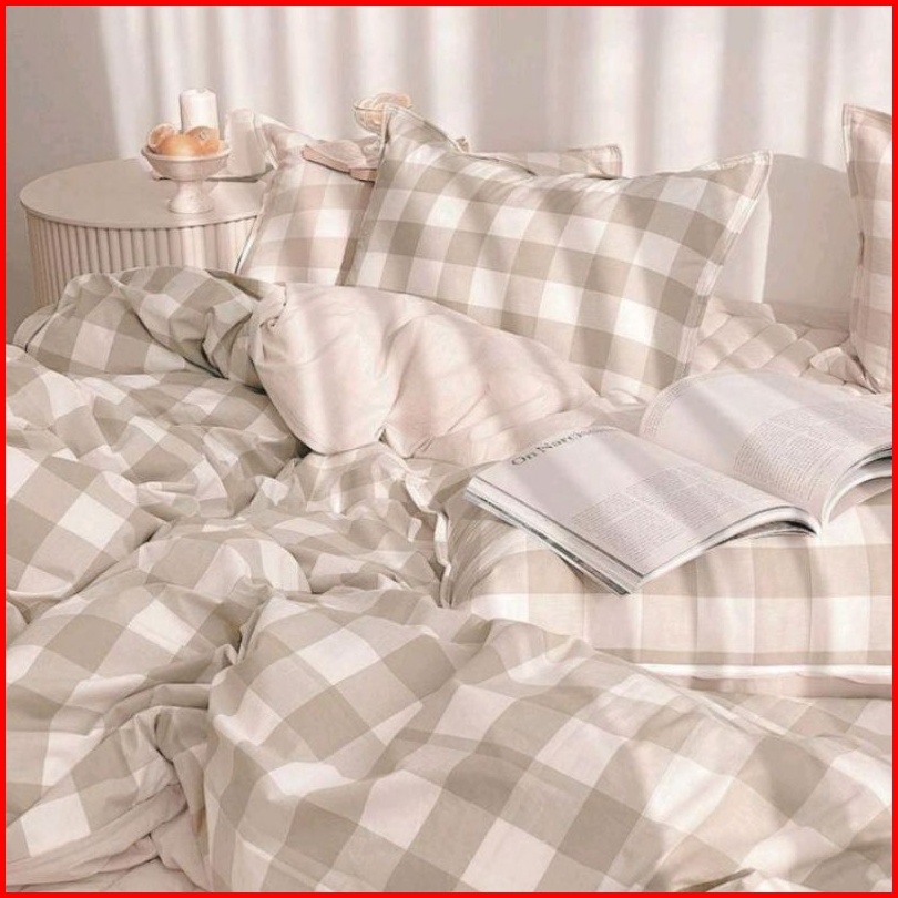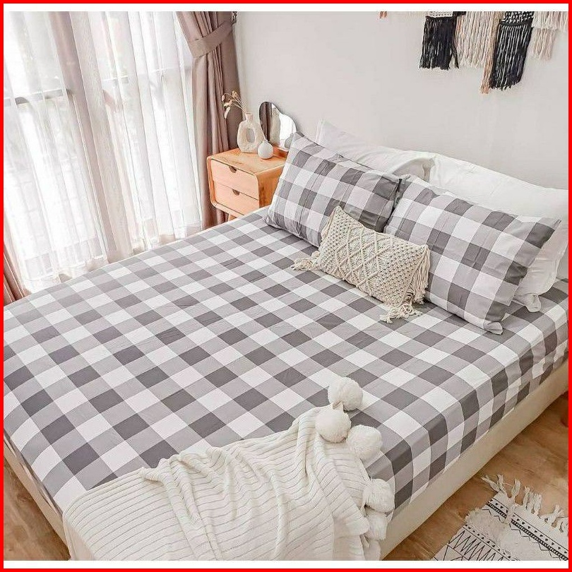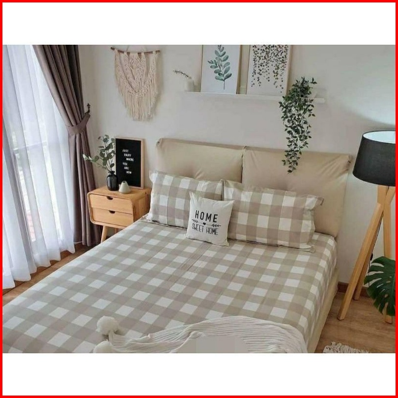 Sprei Aesthic Modern Minimalis Seprei Homemade Korean Style Aesthetic Emily Grid Katun Disperse Bahan Adem Motif Kotak