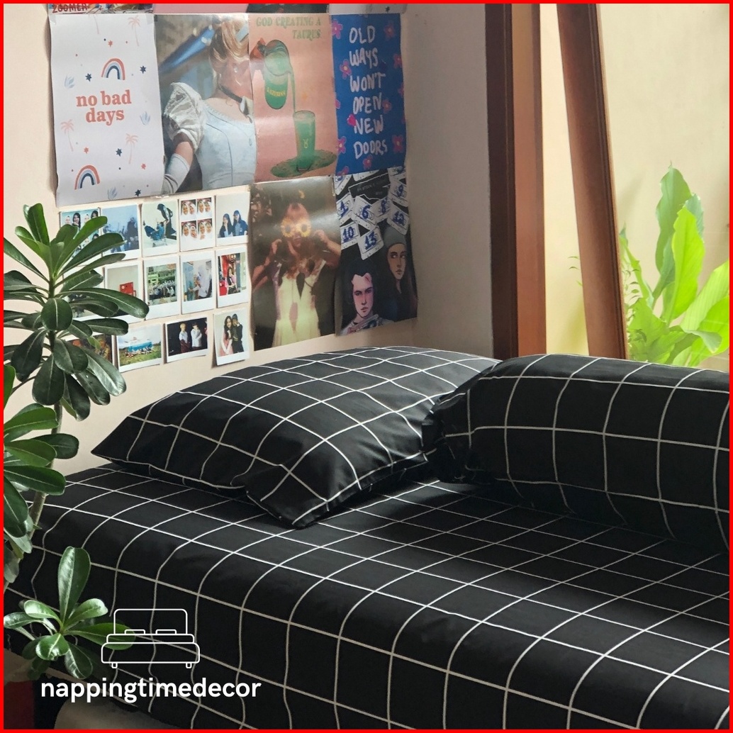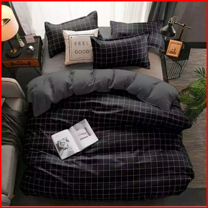 Sprei Aeshtetic Monochrome Motif Kotak-kotak King Size 180x200 Queen Size 160x200 Super Single 120x200