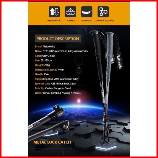 Naturehike Nh17d017-d St03 Trekking Pole Duralumin Anti Karat