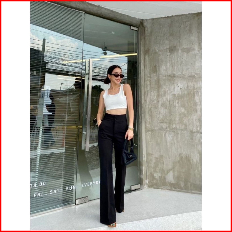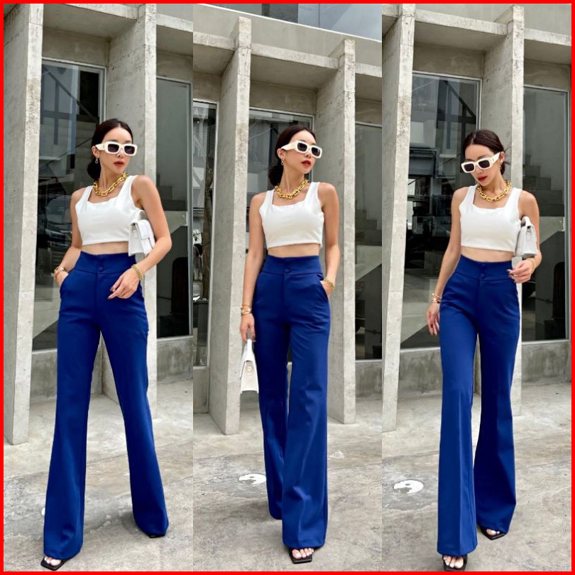 Luxxite.co Bisa Promthong Pants - Hw Celana Buttons High Waist Celana Wanita Bahan Scuba Tebal Kekinian Bangkok I061