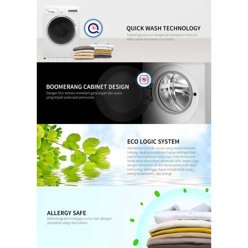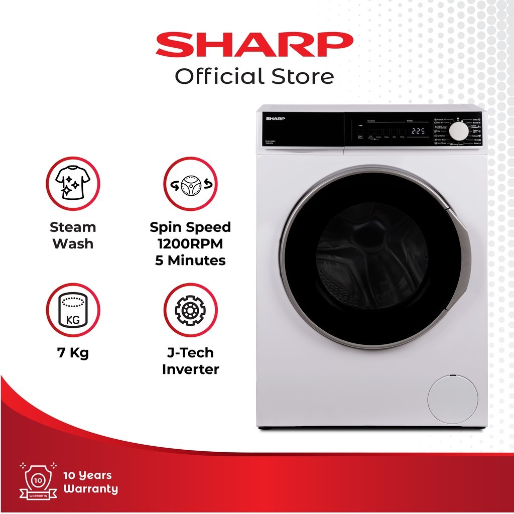 Sharp Mesin Cuci 7Kg Front Loading Inverter Series ES-FL1270XT
