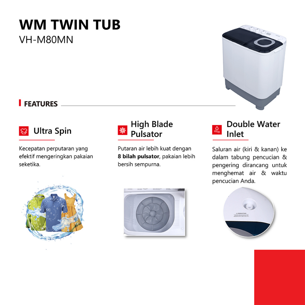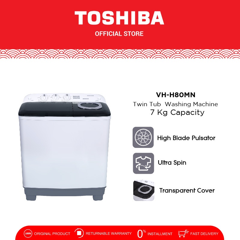 TOSHIBA Mesin Cuci Dua Tabung 7.0kg Model VH-H80MN Twin Tub - High Blade Pulsator