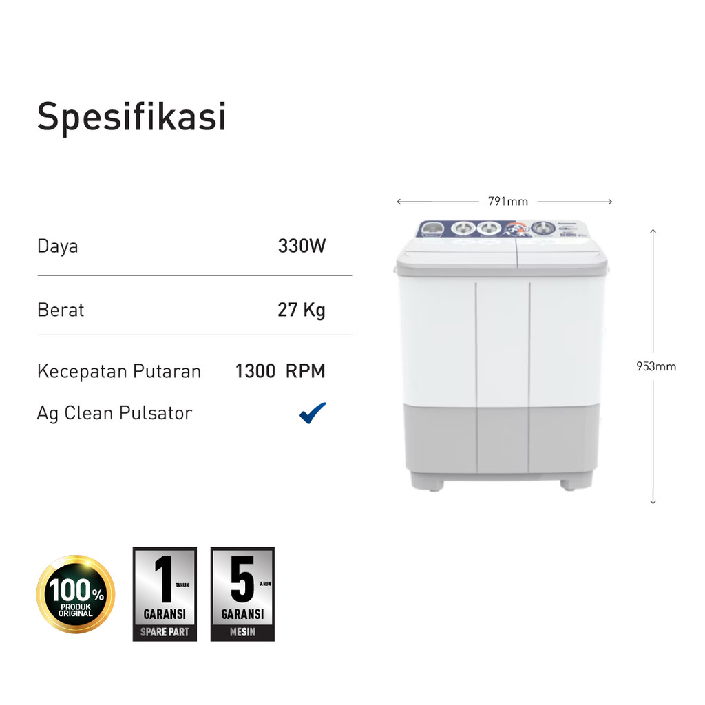 Panasonic NA-W90BBZ3A Mesin Cuci 2 Tabung NANI Series [9 Kg] - Grey