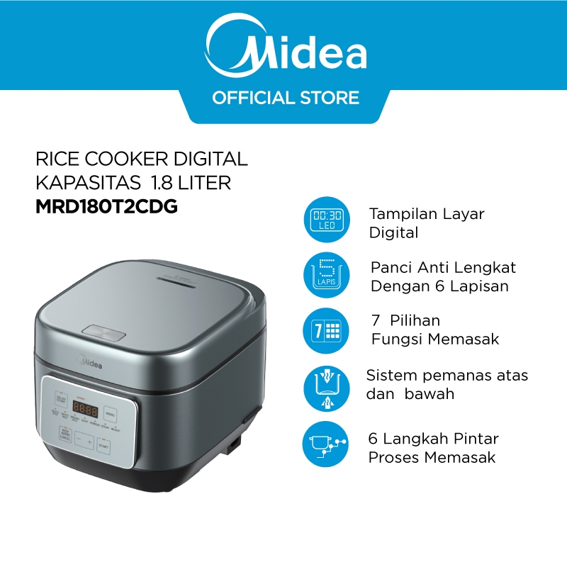[GRATIS FRY PAN] Midea Premium Digital Rice Cooker Low Watt 1.8L MRD180T2CDG – Rice Cooker Minimalis dengan Touch Contr