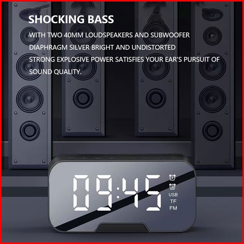 Hot Sale Original Subwoofer Rearview Mirror Alarm Led Display Aktif Musik Box Portable Bluetooth Speaker Bluetooth 5.0 W