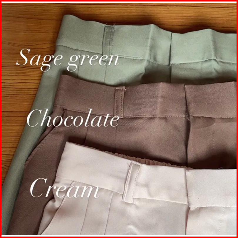 Hitam, fuchsia, sage, mauve, mocca, olive, grey, mint, navy, army, latte, cream, nude peach, baby pink