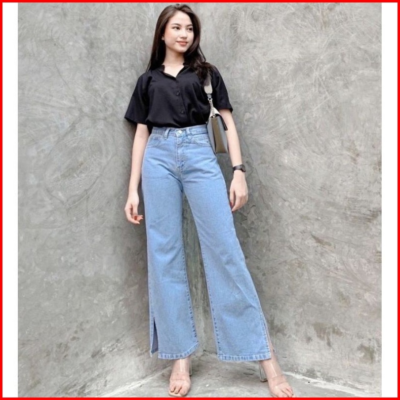 Celana Panjang Jeans Premium Celana Kulot Eonni Celana Kulot Belah Kulot Jeans