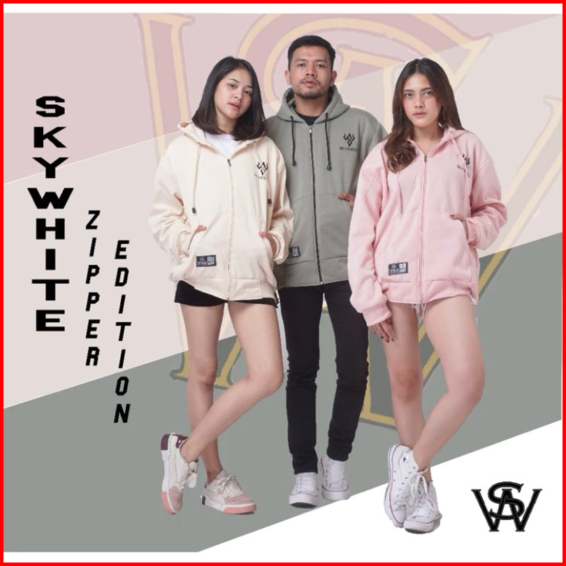 Skywhite Hoodie Zipper Resleting Cewe Cowo Motif Bordir Premium Kain Fleece 280 Gsm Tebal Lembut