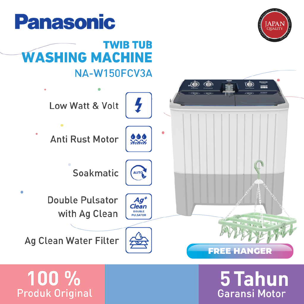 Panasonic NA-W150FCV3A Mesin Cuci 2 Tabung KUAT Series [15 Kg] - Grey