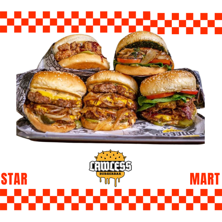 Sabbath Single, Motley Single, Butterkill Single, The Lemmy, Enter Sandwich, The Great Southern Trendkill, Bakken, Philly Burg, Judas Fries, Jalapenostic Front, Mozpit, Municipal Wings, Stryper, Splattertrash, Master of Nuggets 6pcs, Master of Nuggets 12pcs, Master of Nuggets 24pcs, Dogstar, Cheese Streak, Doggy Maguire, The Flaming Cheese, Top Dog, Smallies Dogstar, Smallies Cheese Streak, Smallies Doggy Maguire, Smallies The Flaming Cheese, Smallies Top Dog, Red Cheddar, Sunny Side Up, Pickels, Caramelized Onion, Beef Patties, Beef Bacon, Beef Brisket, Bacon Wrapped for Hotdog, Junior Beef Patty