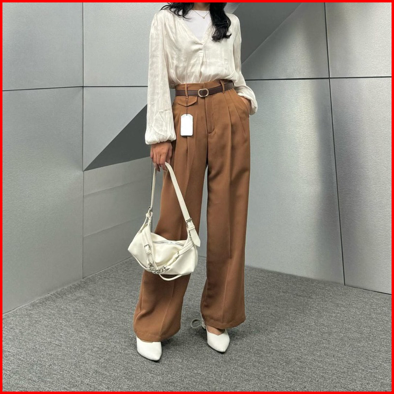 Oro Pants Highwaist Loose Pants Trousers Wanita - Celana Anti Kusut - Celana Kulot Basic Formal Wanita