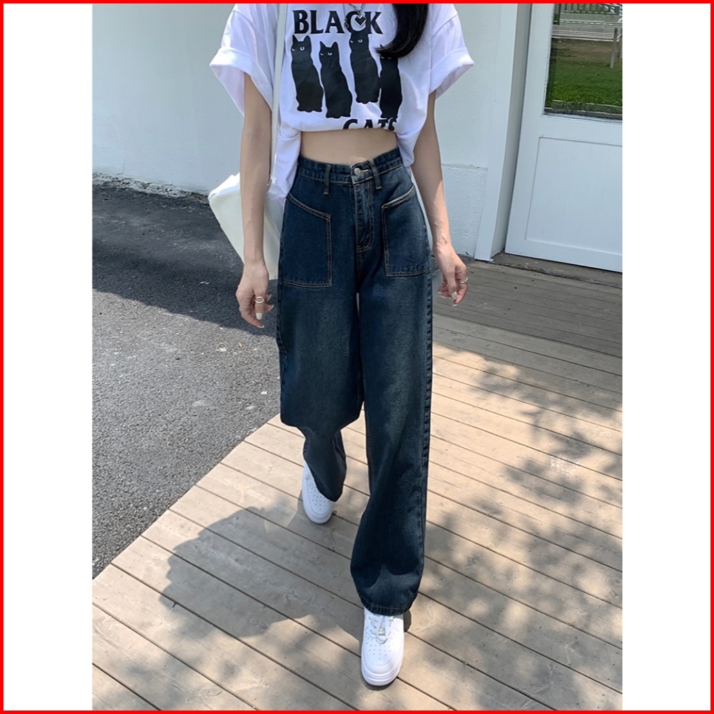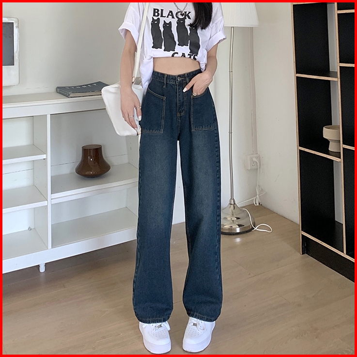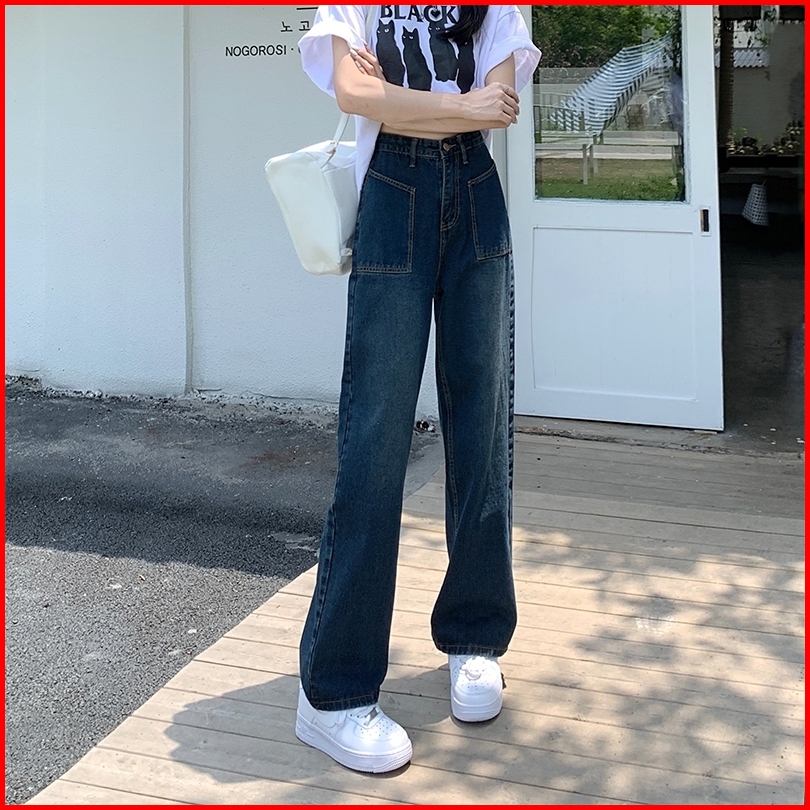 Celana Jeans Terbaru Kulot Korea Celana Biru Retro Loose Pants Highwaist Wanita