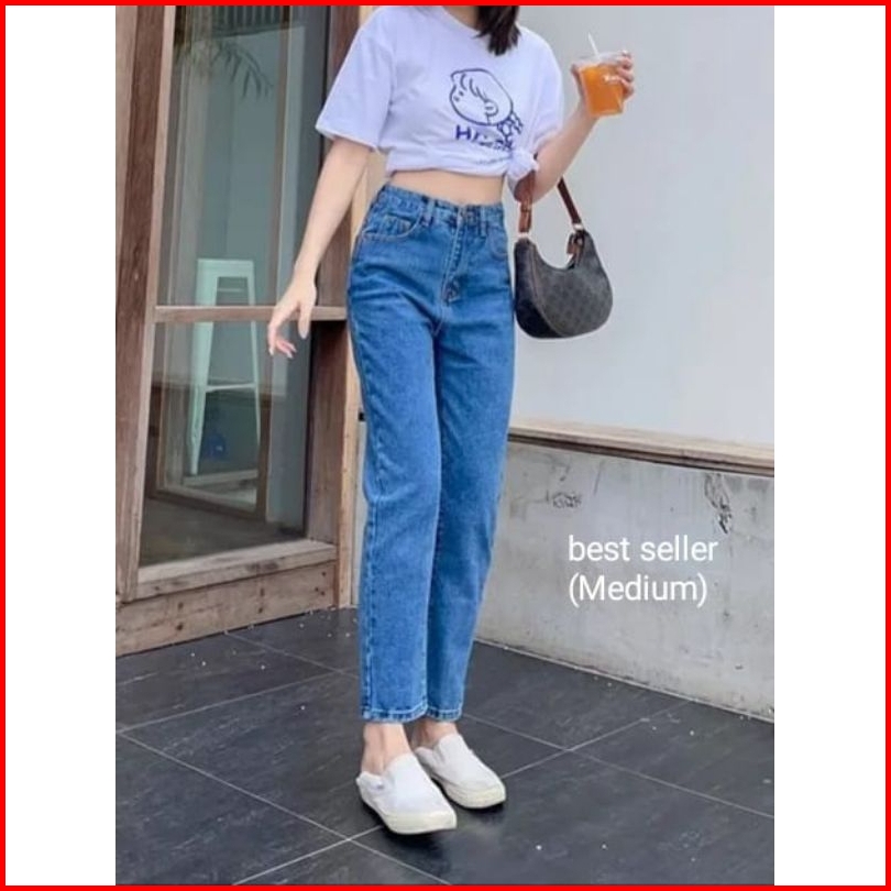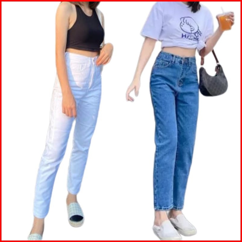 27-34 Medium Basic Plain Boyfriend Kekinian Hw Jeans Celana Highwaist Jeans Haigh Waist Jeans Hw Murah Hitam Putih