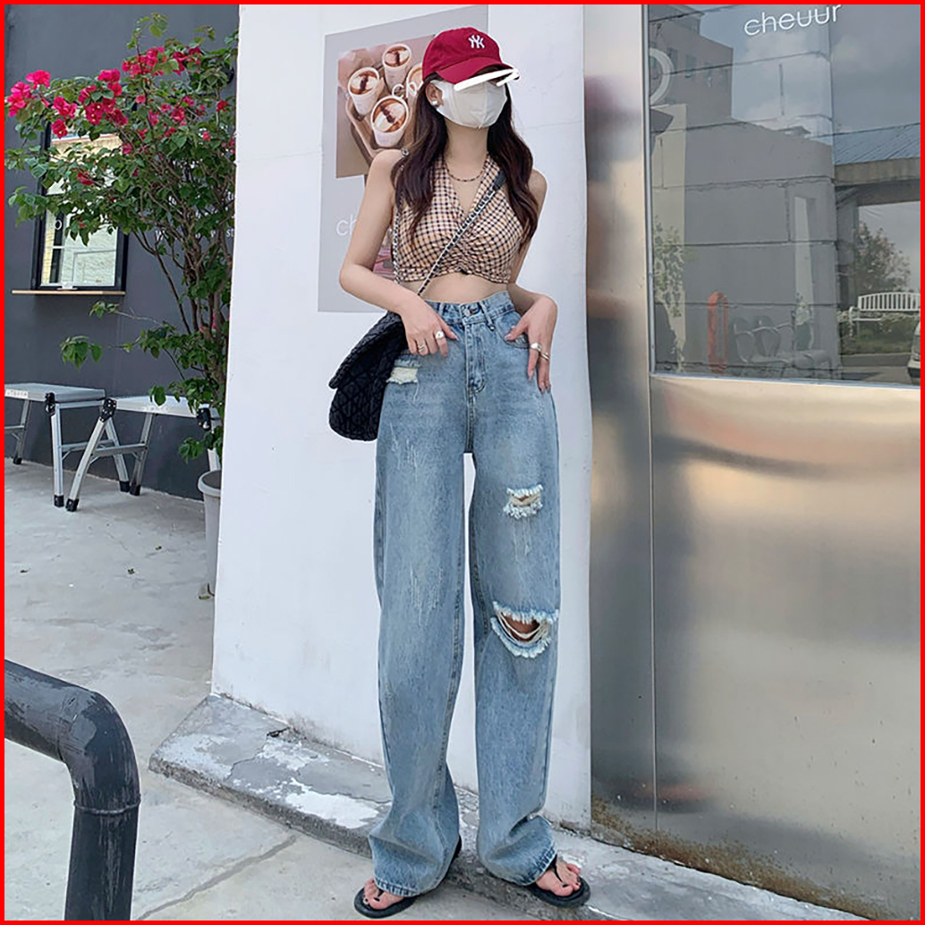 Kekinian Factory Ready Stok Celana Jeans Panjang Wanita Sobek Baggy Pants Korean Style Celana Denim Dewasa Cewek Casual