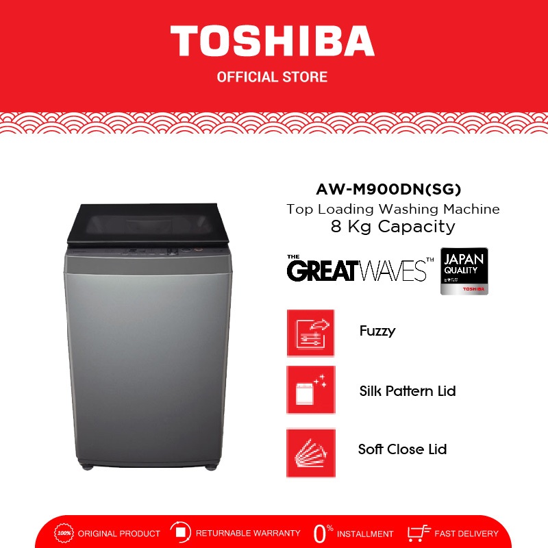 TOSHIBA Mesin Cuci Top Loading 8kg Model AW-M900DN(SG) / Bukaan Atas/1 Tabung