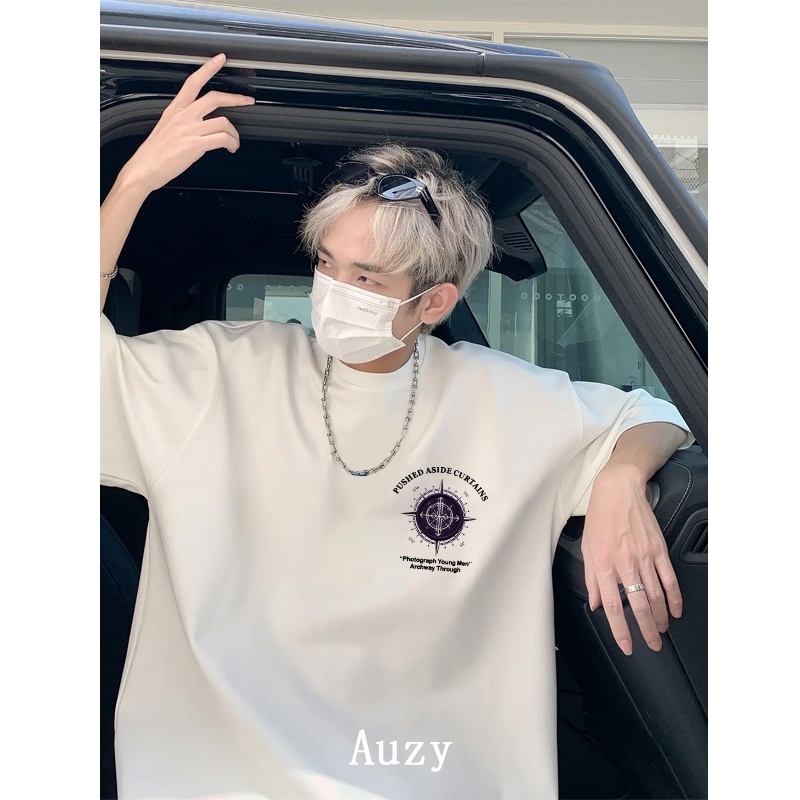 AUZY retro Amerika Mode kompas kaos pria wanita T-shirt baju oversize t shirt distro 7.10