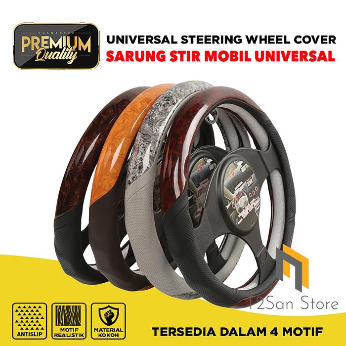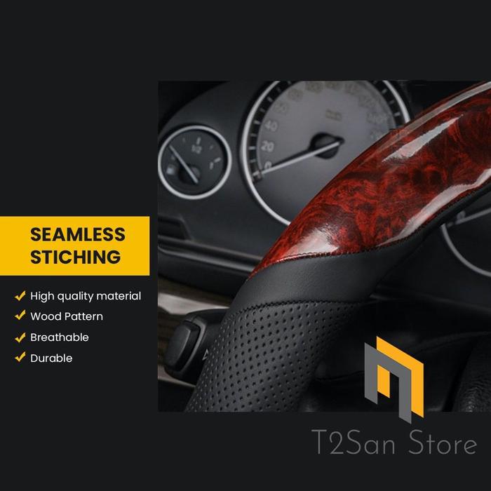 Sarung Setir Mobil Kulit Premium Motif Kayu Anti Slip Car Coklat Cover Stir - Hitam Merah