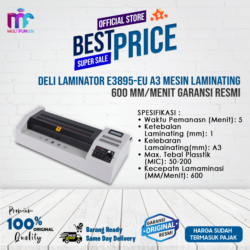 Deli Laminator E3895-EU A3 Mesin Laminating 600 mm/Menit Garansi Resmi