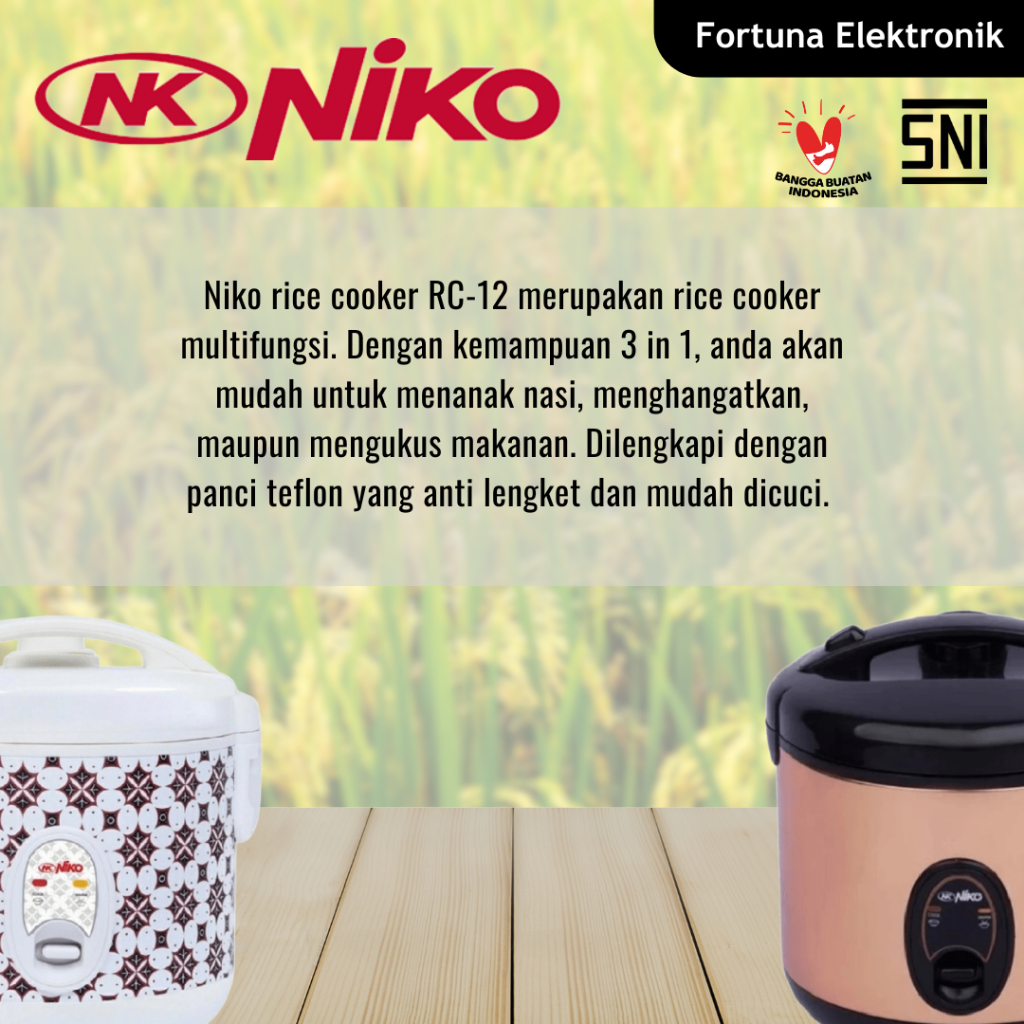 Niko Rice Cooker NK 12 WS / BG / BTQ Magic Com 1.2 Liter Anti Lengket