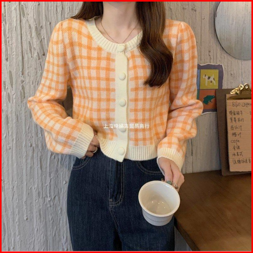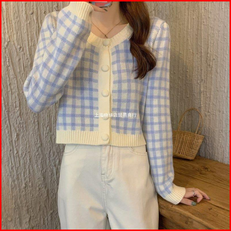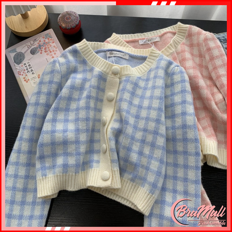 Bra Mall Bj-079 Cardigan Long Sleeve Knit Pakaian Wanita Cardigan Motif Kotak-kotak