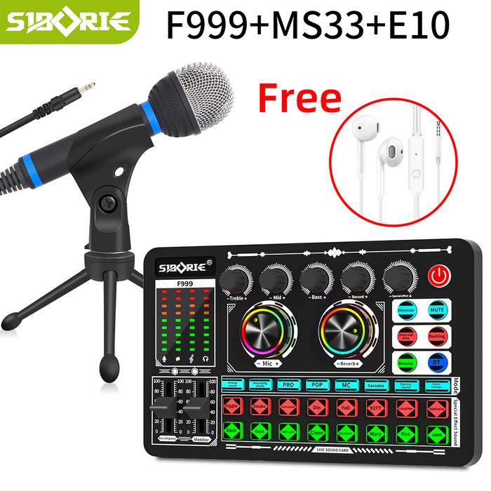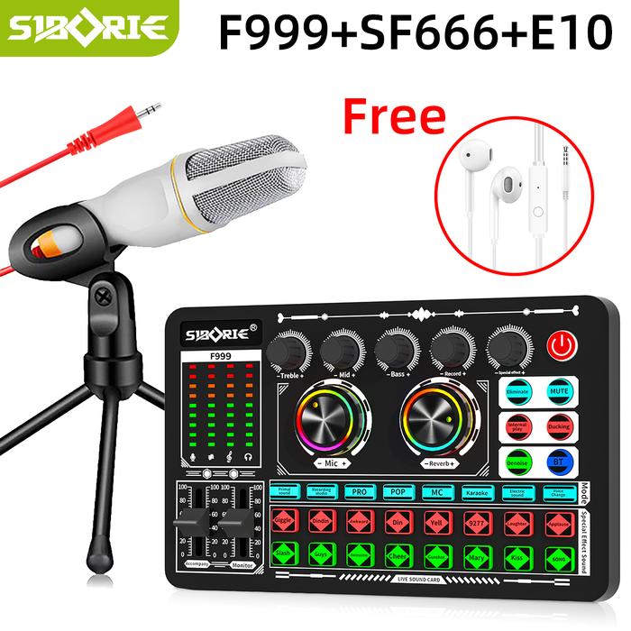 Siborie [Free Headset] F999+Sf666 Paket Lengkap Soundcard Mic Full Set - F999+Sf666Black