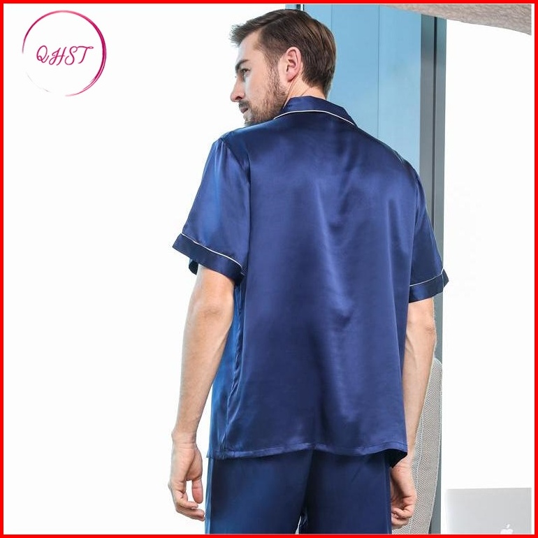 Qhst Piyama Pria Set Satin Lengan Pendek Celana Pendek Tipis Sejuk Pria Perempuan Pasang Piyama Import Dewasa Ukuran Bes