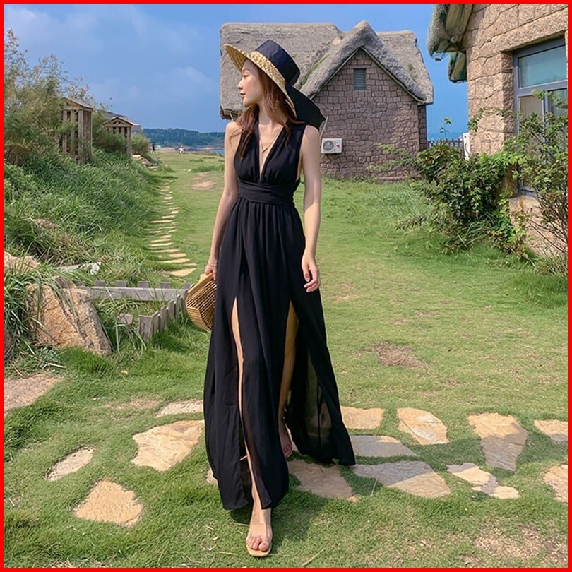 Satria Olshop New Busy Dress Belah Baju Pantai Serut Belakang Korean Style Katun Rayon Premium