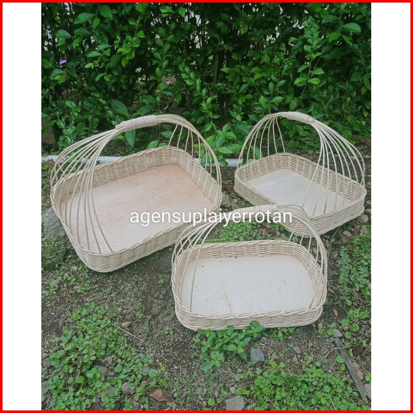 Murah Isi 3 Pcs Keranjang Rotan Model Pelangi Full Rotan Halus