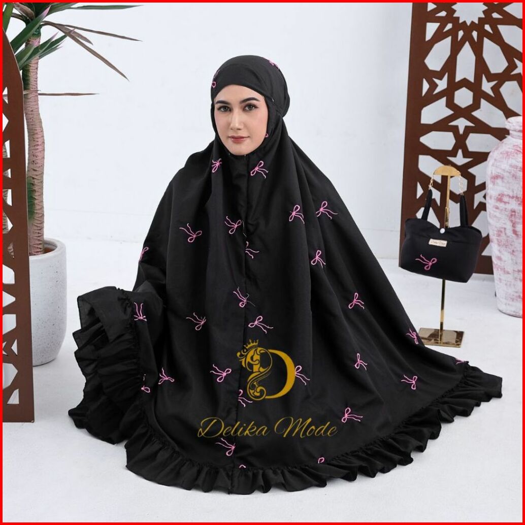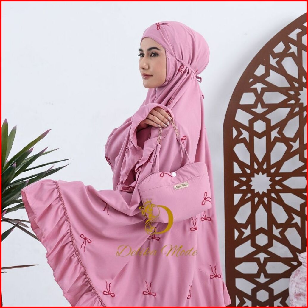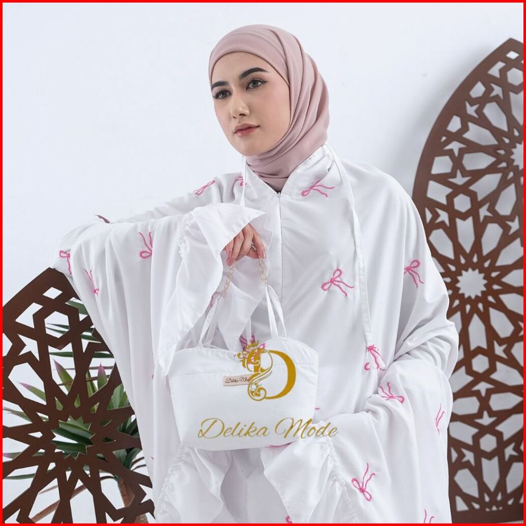 Delikamode - Mukena Dewasa Coquette Bordir Pita 2in1 Katun Premium Rempel Jumbo Mewah
