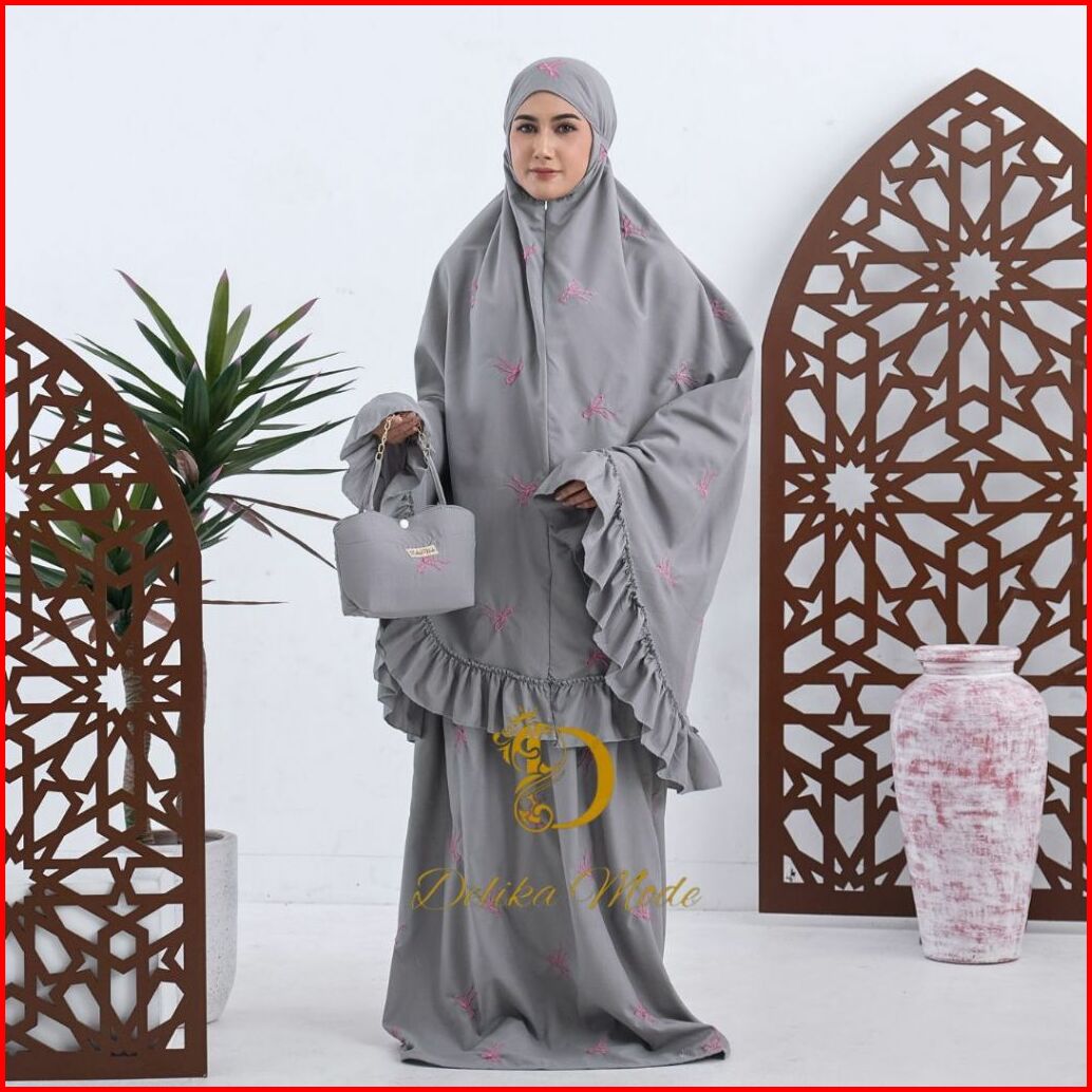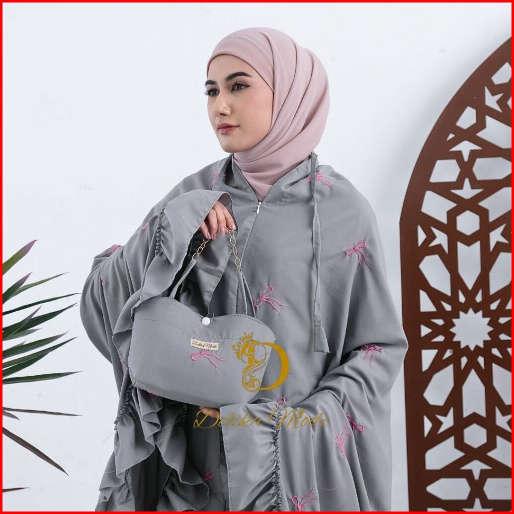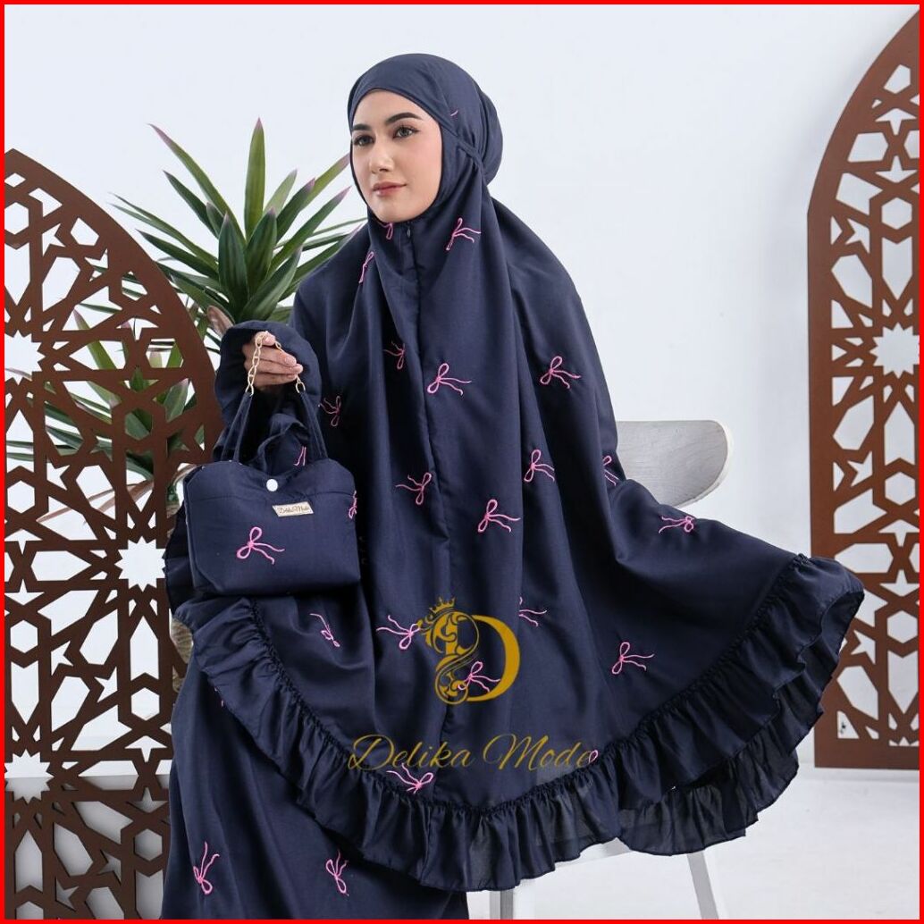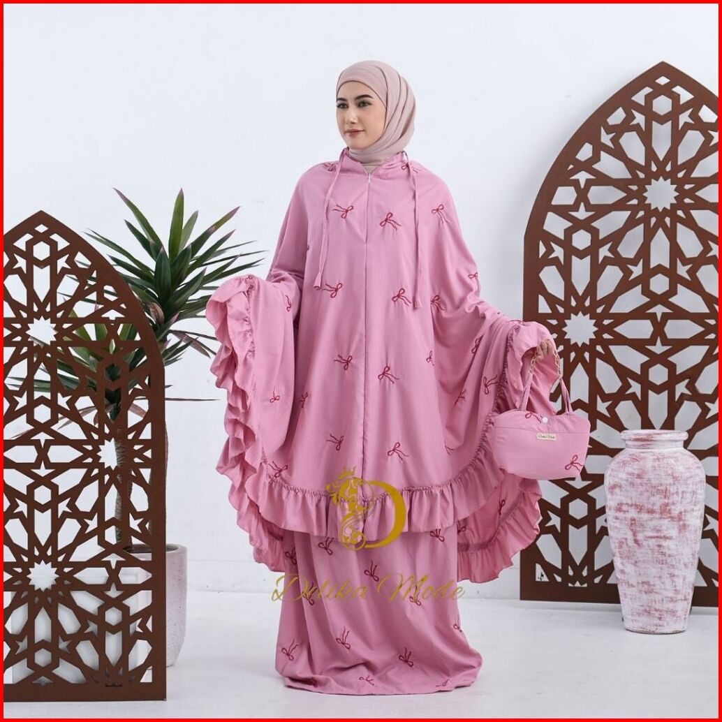 Delikamode - Mukena Dewasa Coquette Bordir Pita 2in1 Katun Premium Rempel Jumbo Mewah