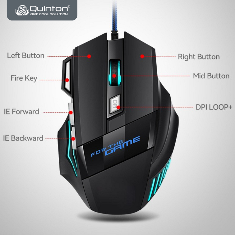 Quinton Mouse Gaming G6 7 Button USB 2400 Dpi mode switch led e-sport