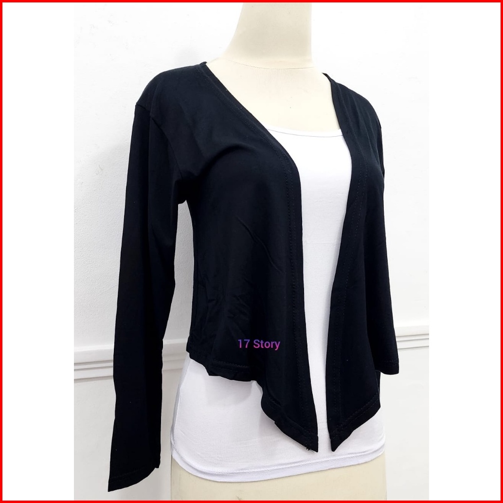 Cardigan Hitam Wanita Crop Top Korean Style Import Lengan Panjang Polos Kekinian