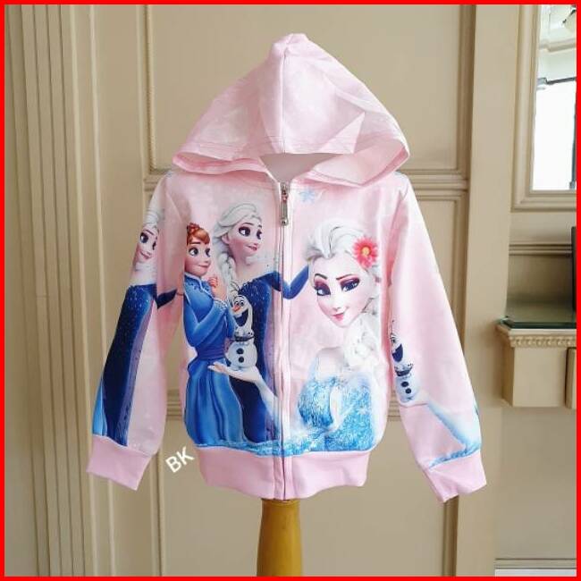 Jacket Hoddie Anak Perempuan Motif Frozen Elsa Anna Jaket Anak Princess Import