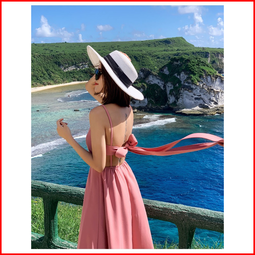 D104 - Dress Pantai Tali Satu Model Pita Belakang Gaun Wanita Pantai Kondangan Long Dress Motif Pita Long Dress Backless