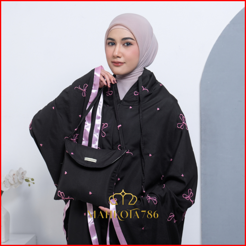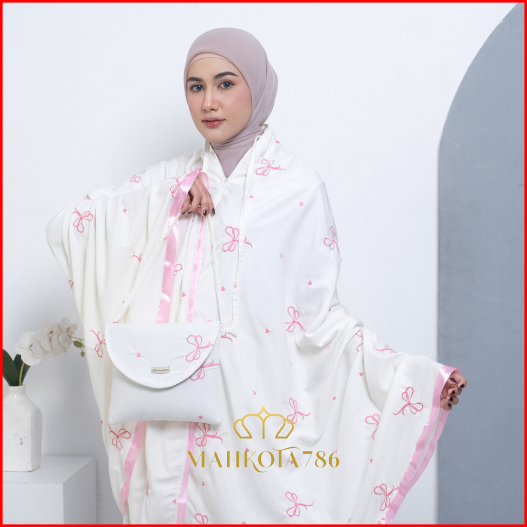 Mahkota786 - Mukena Coquette Mukenah Dewasa Pita Pink 2in1 Sultan Aesthetic Ribbon Remaja Bahan Adem Bordir Mewah Jumbo