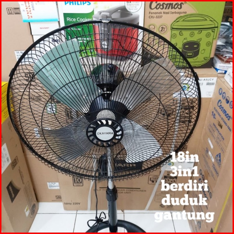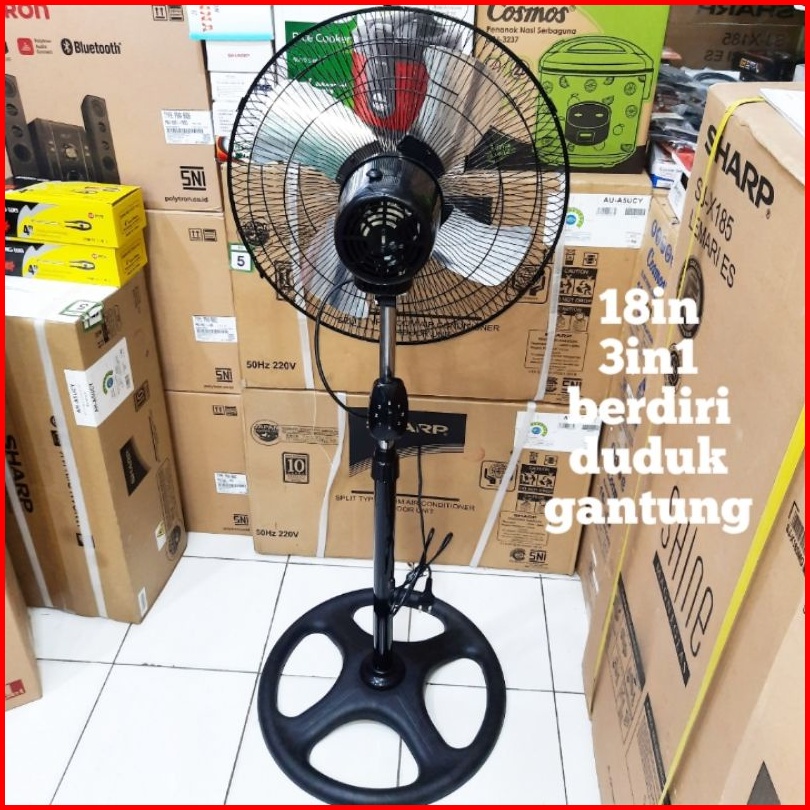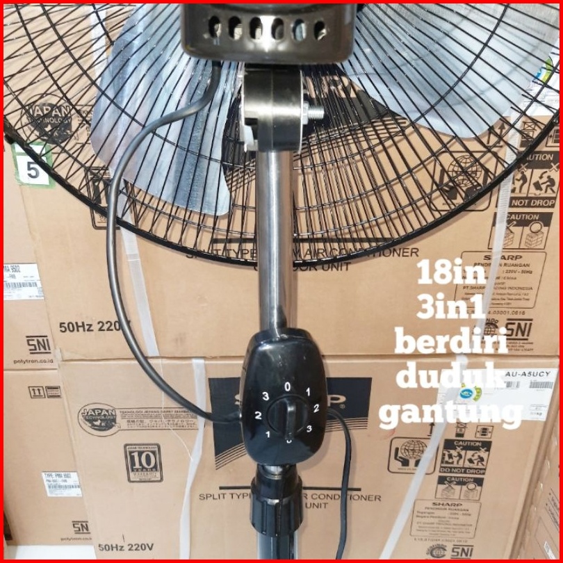 Kipas Angin Berdiri 18in Tornado Baling Baling Besi 3 Fungsi Berdiri Duduk Gantung Aoyama