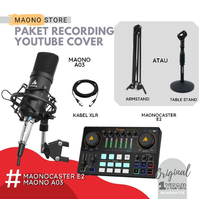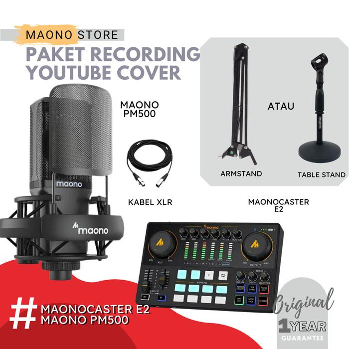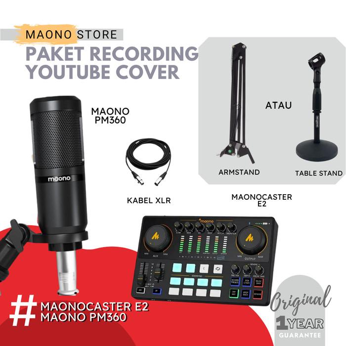 Maonocaster E2 + Mic | Paket Podcast Streaming Cover Soundcard Maono - Pm360, Mh601
