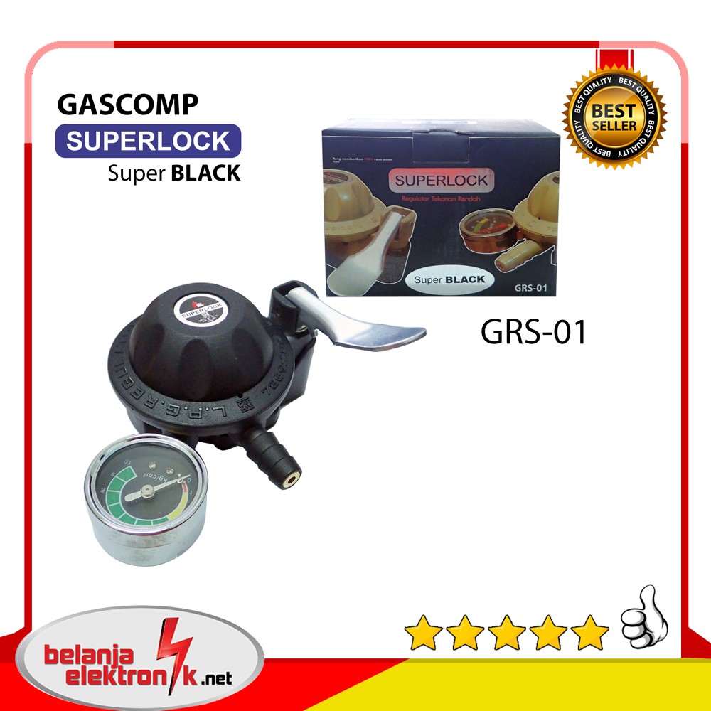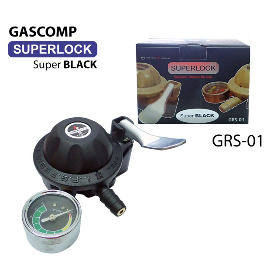 REGULATOR GRS 01 COMP SUPERLOCK SUPER BLACK TEKANAN RENDAH KEPALA LPG 3 KG / 12 KG ANTI BOCOR